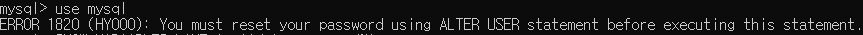 임시 비밀번호로 접속한 root 계정은 어떤 수행을 하기 위해서는 비밀번호를 사용자가 직접 변경해야 그 이후에 설정을 할 수 있습니다. 그렇지 않으면 다음과 같은 문구가 출력됩니다.