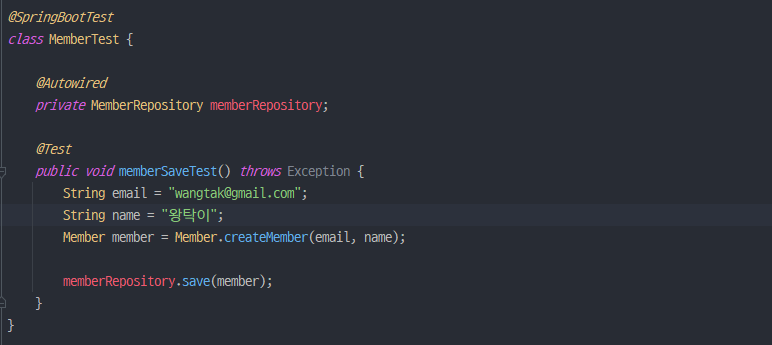 Member 테스트 코드를 수정하지 않고 똑같이 실행했을 경우 다음과 같은 결과를 확인할 수 있습니다.