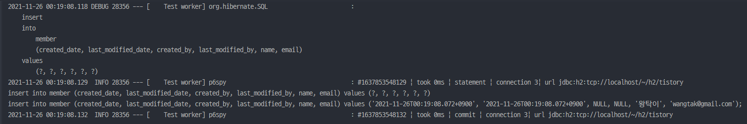 이처럼 Auditing과 Persistable<>을 구현하게 되면 불필요한 SELECT 쿼리를 날리지 않고 INSERT 쿼리 한 번만 날리는 것을 확인할 수 있습니다.