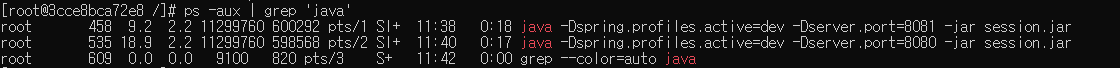 Docker Container로 옮긴 session.jar를 다음과 같은 명령어로 실행하도록 하겠습니다. terminal 한 개당 명령어 한 개씩 해주셔야 합니다.