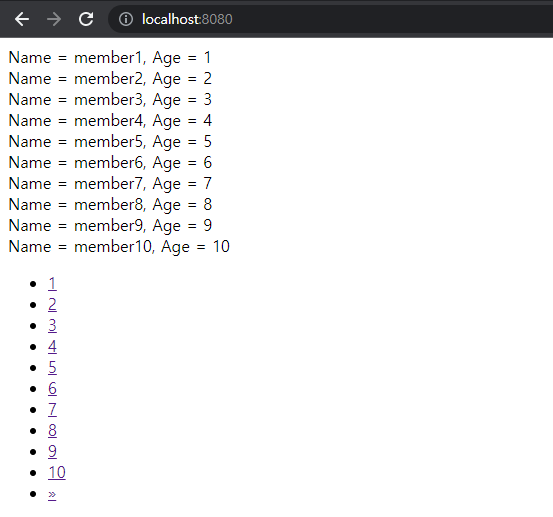 3. 한 페이지는 10명의 회원을 조회할 수 있으며, 총 10개의 페이지 번호를 확인할 수 있습니다.