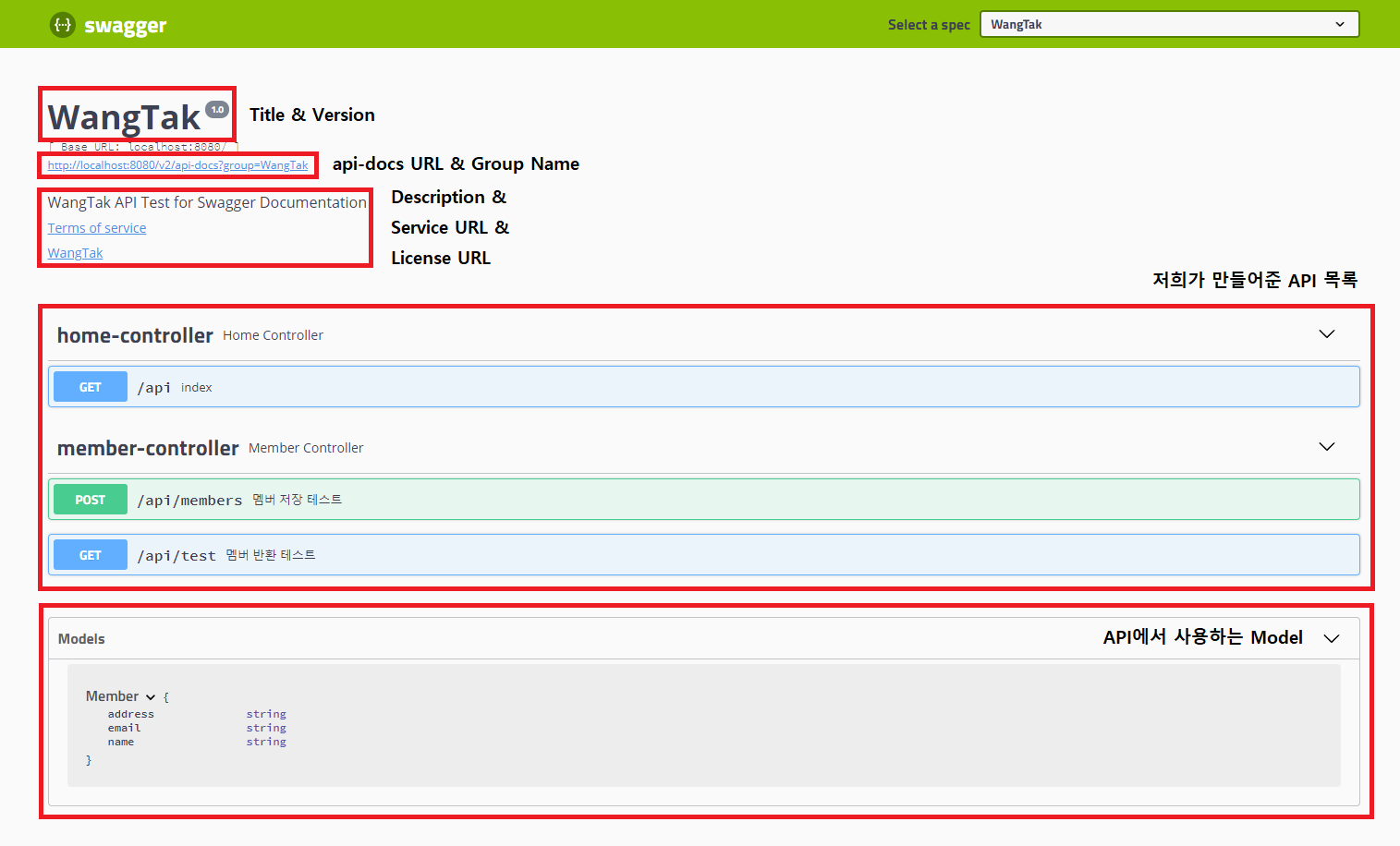 - API에서 사용하는 Model(Member)에 대한 Spec도 확인할 수 있습니다.